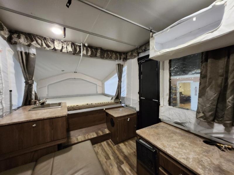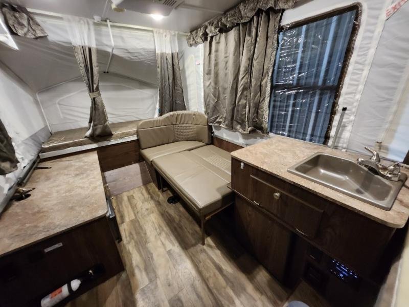 For the adventurous camping couple, come choose the Flagstaff SE 176SE folding pop up camper. This model features enough sleeping space for up to four people.